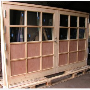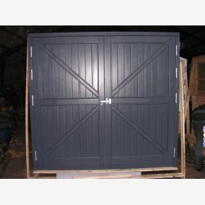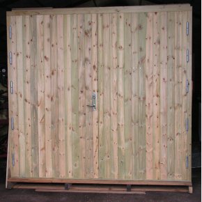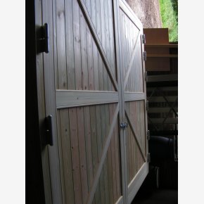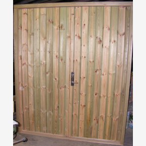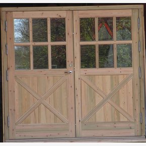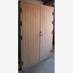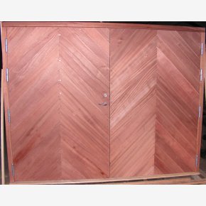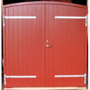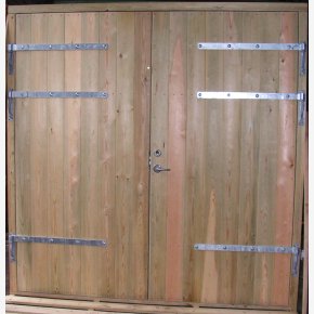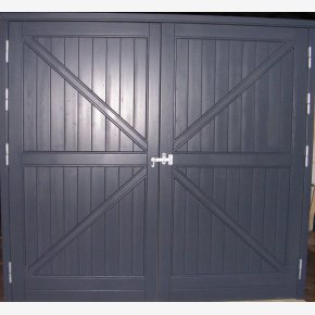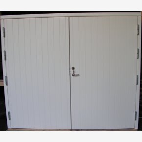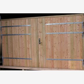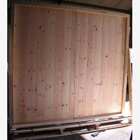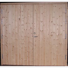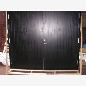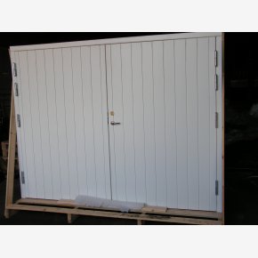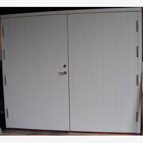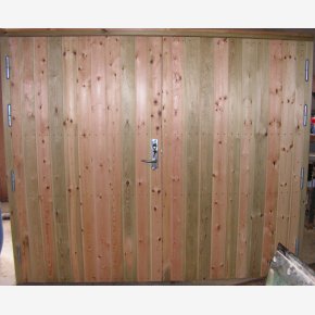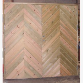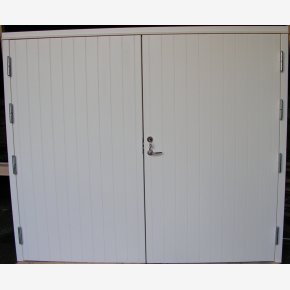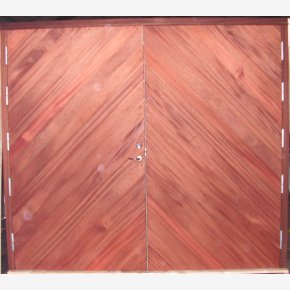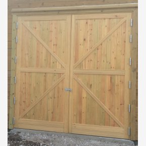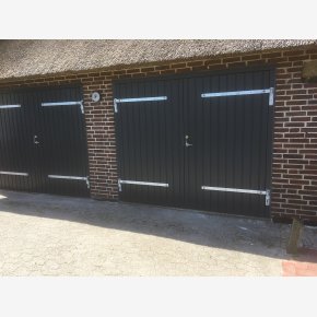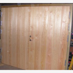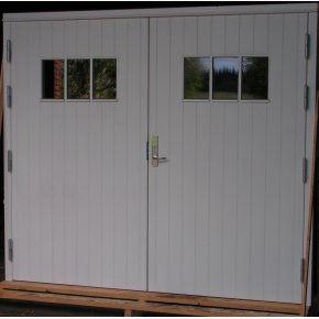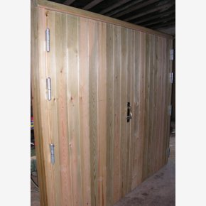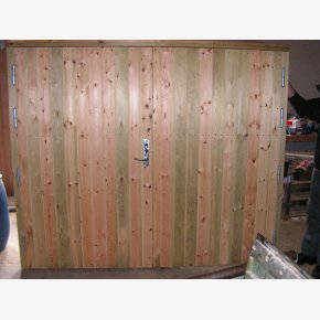 Fremstilling af solide sidehængte Garage porte i udførsel, træsort, størrelse & stil. efter ønske, med match til ejendommens øvrige døre og porte.
