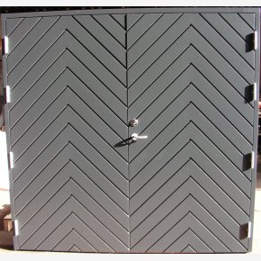3 af de 6 Stk. Remise Porte som vi Special producerede og leverede til Sporvejsmuseet Skjoldnæsholm på Midtsjælland. Udvendig karmmål.: 360 x 550 cm
