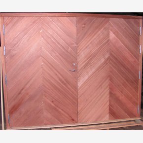 Fremstilling af solide sidehængte Garage porte i udførsel, træsort, størrelse & stil. efter ønske, med match til ejendommens øvrige døre og porte.